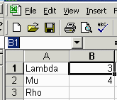 To give the name "Lambda" to the cell that has the value for lambda, click on that cell, B1. Notice that we name the cell that has the number, not the cell that has the label.