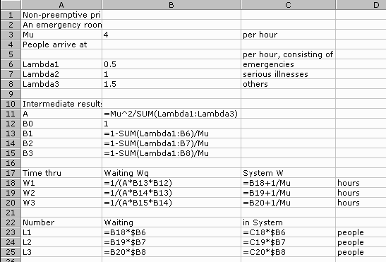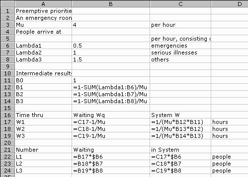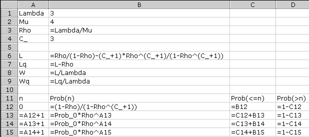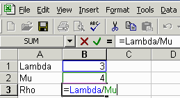 You can use these names in cell formulas. For, example, you can type in the formula for rho as "=Lambda/Mu" instead of "=B1/B2". The formula with names is much easier to understand.