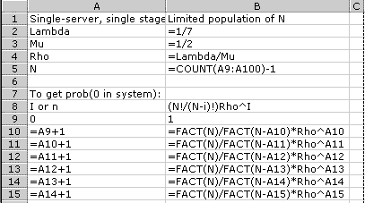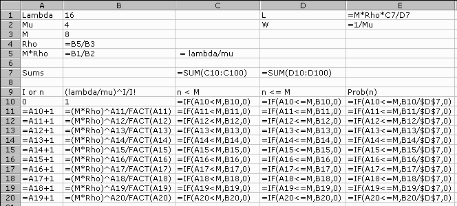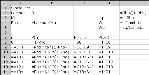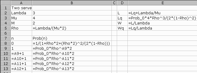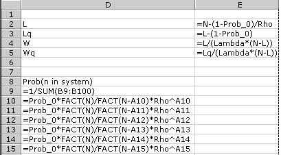 Constant service time. (Excel 2007 requires L_ as a name, rather than L.)