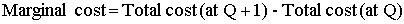 Marginal Cost: = difference in Total Cost