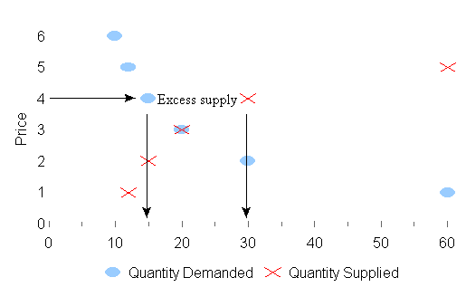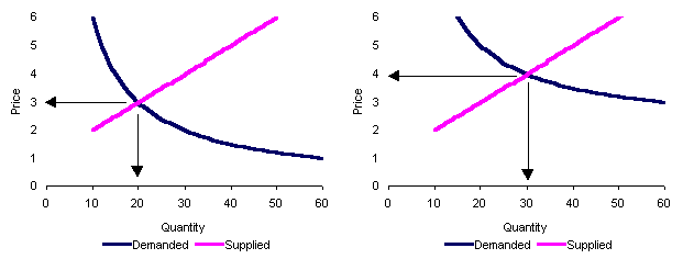 In this example, the price rises from $3 to $4, and the quantity rises