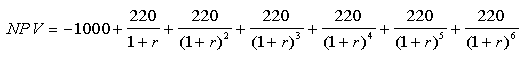 | Green line investment | -$1000 | $220 | $220 | $220 | $220 | $220 | $220 | $117 | 0.086 |