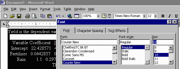 use pull down menus on the toolbar to change the font face and size, like